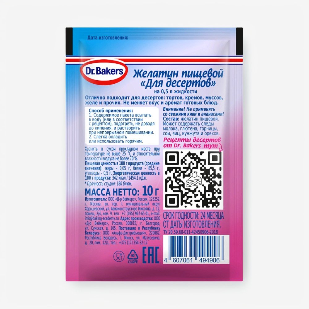 Желатин Dr. Oetker отлично подойдет для приготовления ваших десертов.