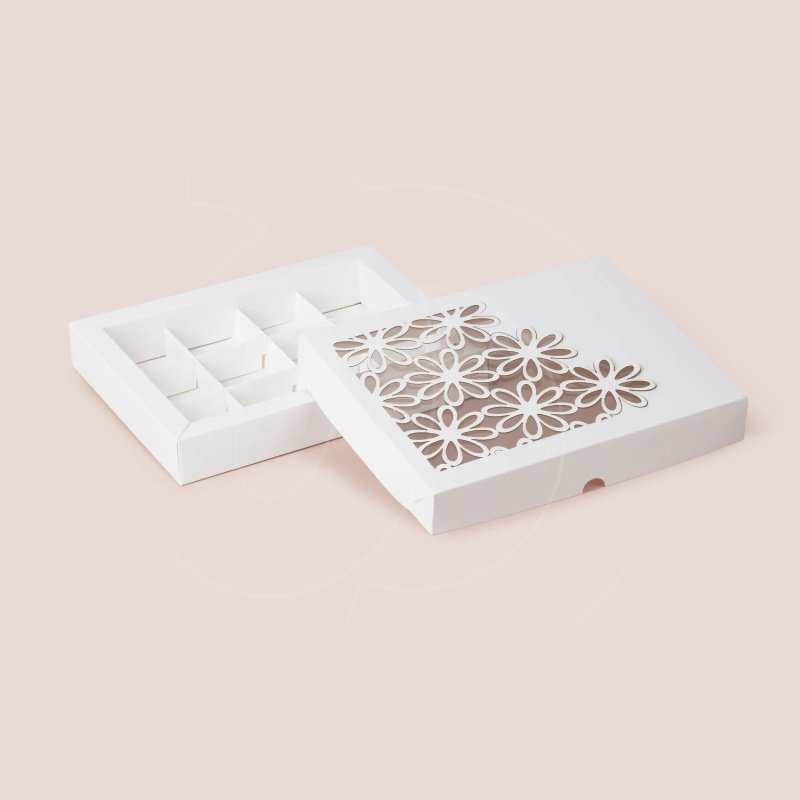 Доставка Коробка на 12 конфет с окном "Ромашка" белая из магазина в вашем городе:
